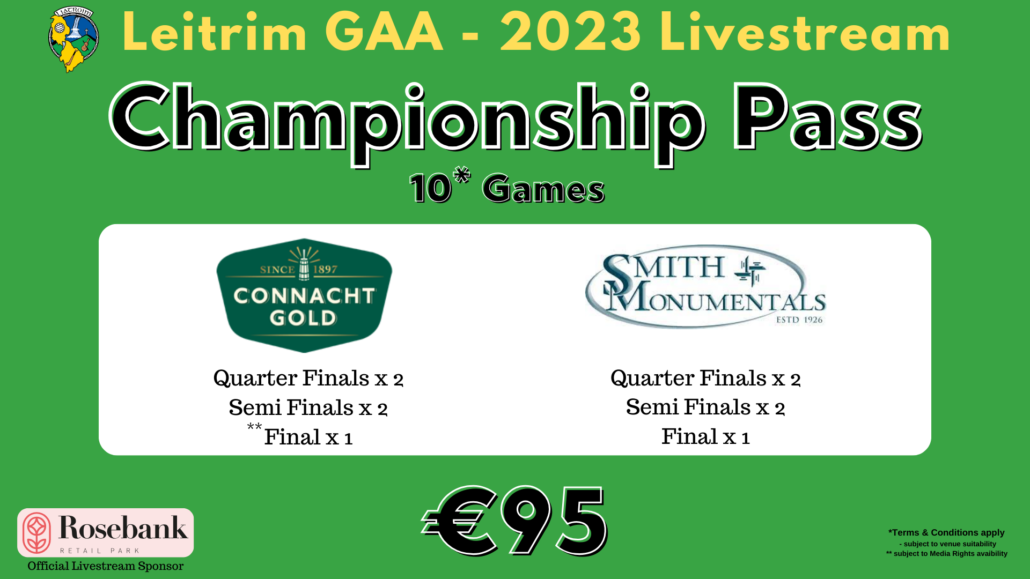 This year Leitrim GAA is delighted to announce that our Official Livestream Sponsor is Rosebank Retail Park and they are the exclusive sponsors of all of our Livestreams. Located across the road from Páirc Seán MacDiarmada the Rosebank Retail Park consists of 12 well known national & local brands including Menarys, Boots Chemist, Q2 Discount Store, Woodies DIY, Paul Byron Shoes, BORN Clothing Boutique, Three, Sports Direct, Brand Max, Esquires Café and Tesco Supermarket.