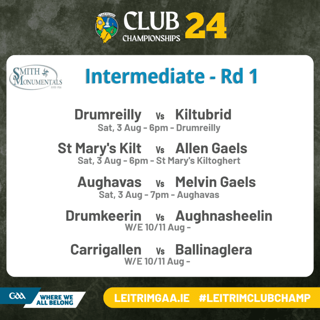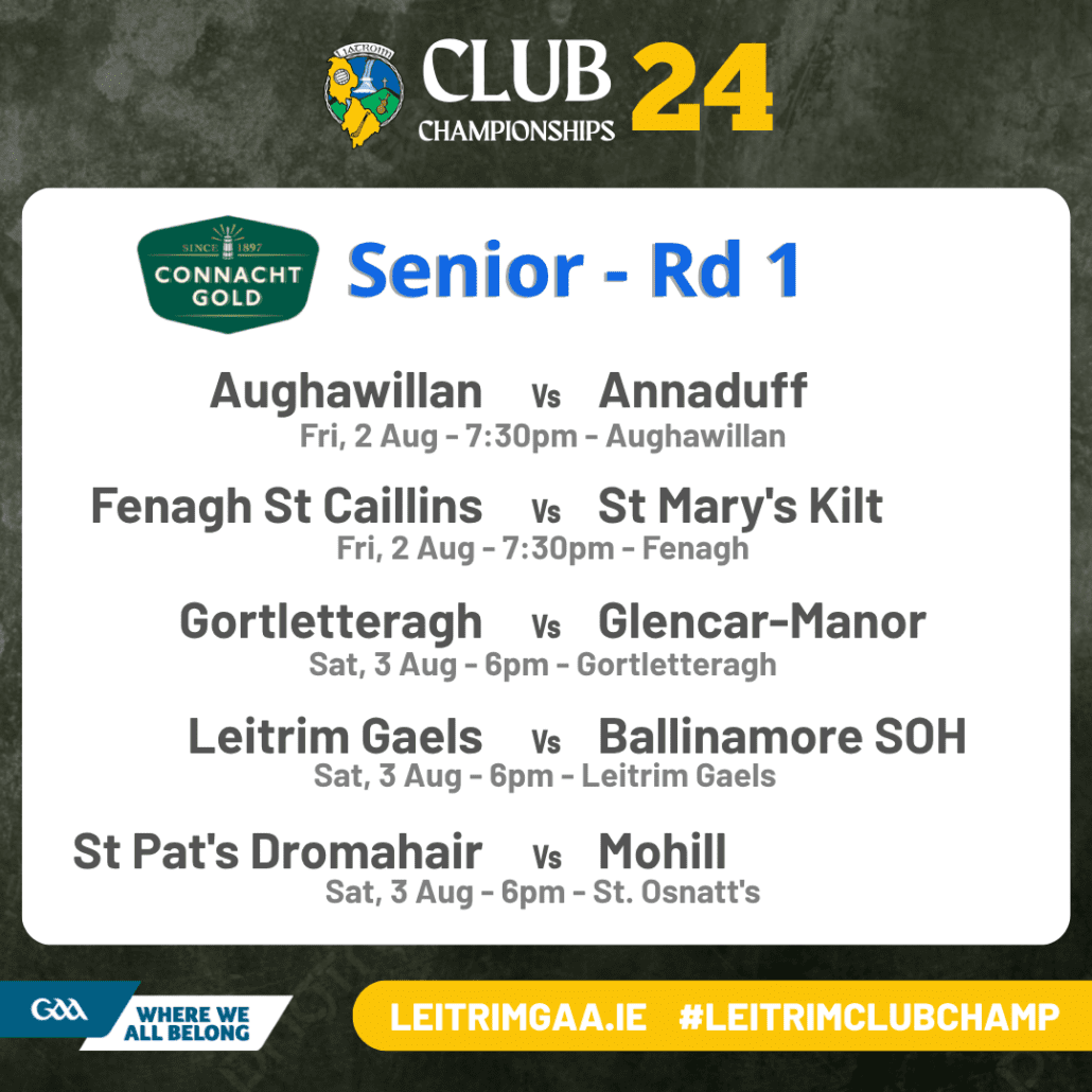 Following this evenings draw for the 1st round of the Connacht Gold SFC – Round 1 the following fixture details have been released and are as follows: