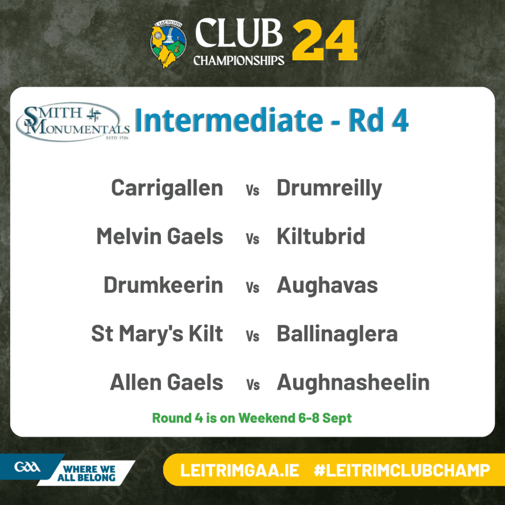 The fixture details for the Connacht Gold SFC – Round 4 have been released and are as follows: