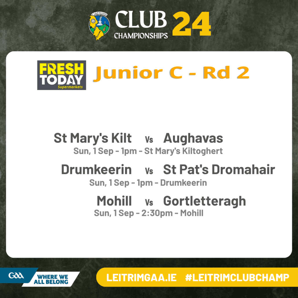 The remaining fixture details for the Fresh Today Junior C – Round 2 has been released and is as follows: