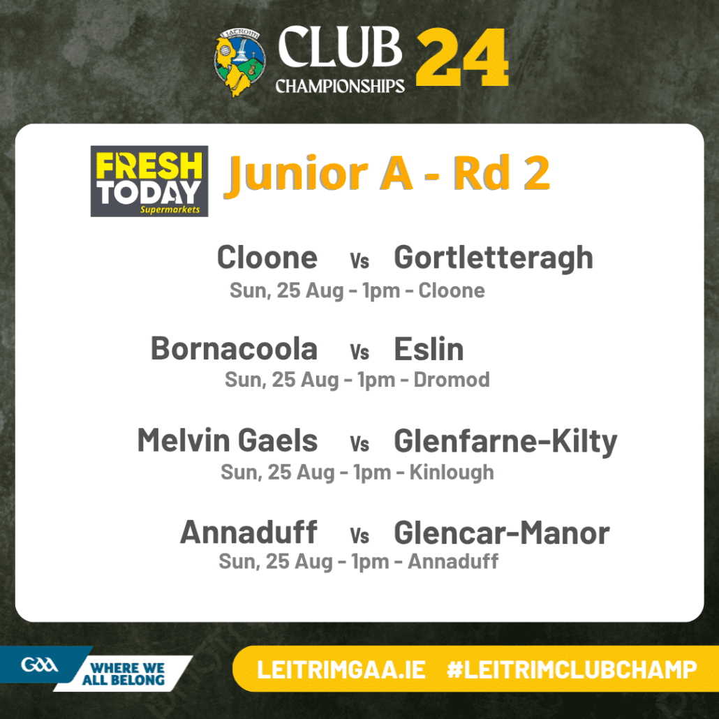 The fixture details for the Fresh Today Junior A – Round 2 have been released and are as follows: