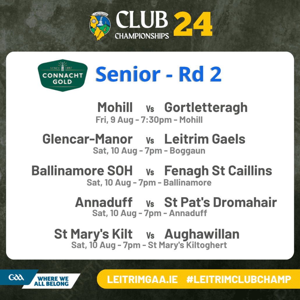 Following the draw for the 2nd round of the Connacht Gold SFC – Round 2 the following fixture details have been released and are as follows: