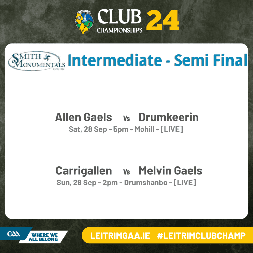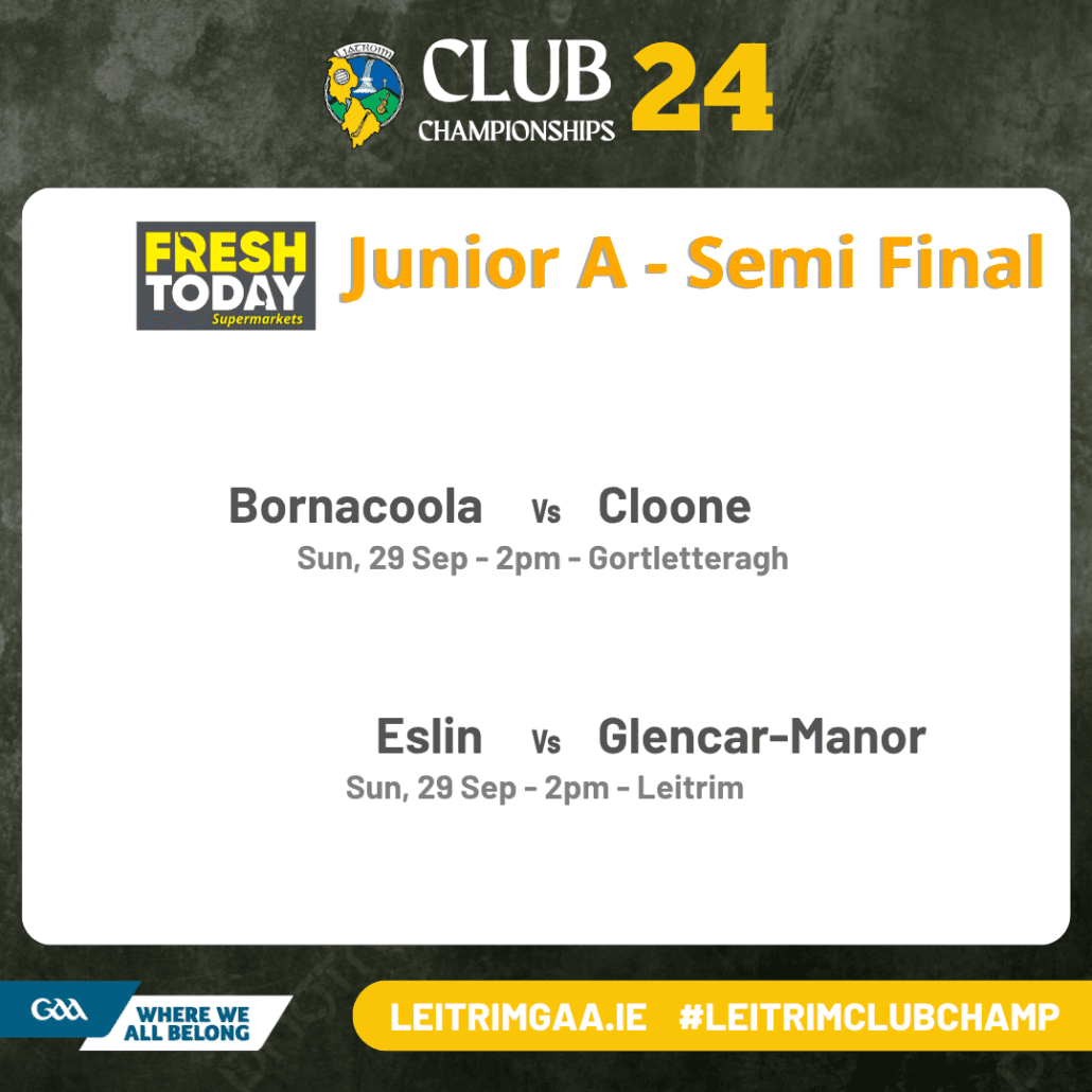 The fixture detail for the Fresh Today Junior A – Semi Finals have been released and are as follows: