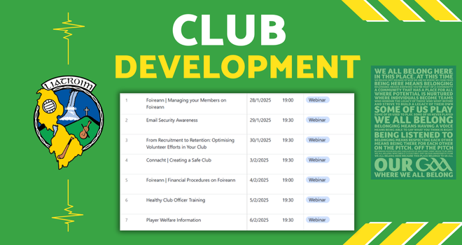 Club Officers – Useful webinars on GAA Learning portal: Including Foireann Membership & Cyber Security