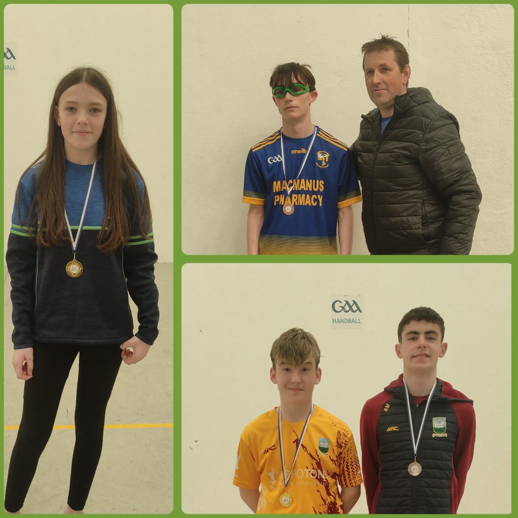 Collage – U13 medallists : Muireann Cox Mohill (Bronze U13 Girls), Abbie Kane Ballinamore (Gold U13 Girls), Eimer McKiernan Drumshanbo (Silver U13 Girls).
