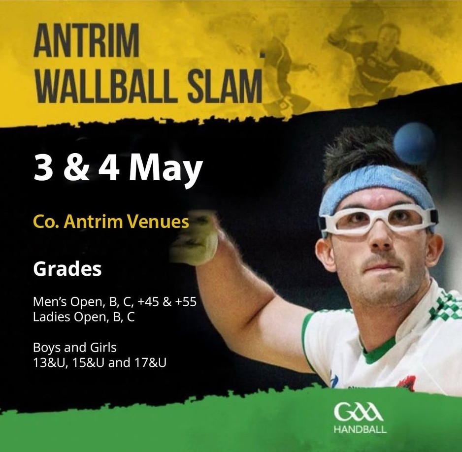 One wall handball comes back into focus this weekend when the Antrim Slamswings into action at venues across Belfast, Newtownabbey and Toomebridge on Saturday May 3rd and Sunday May 4th. This European One Wall tour event will feature a packed field of top Irish and European wallball players.