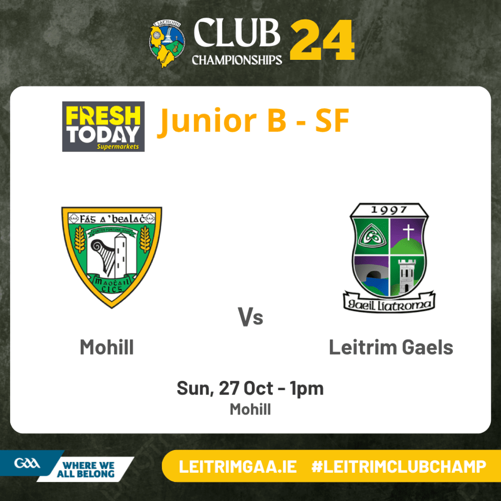 The fixture details for the Fresh Today Junior B – Semi Final has been released and is as follows: