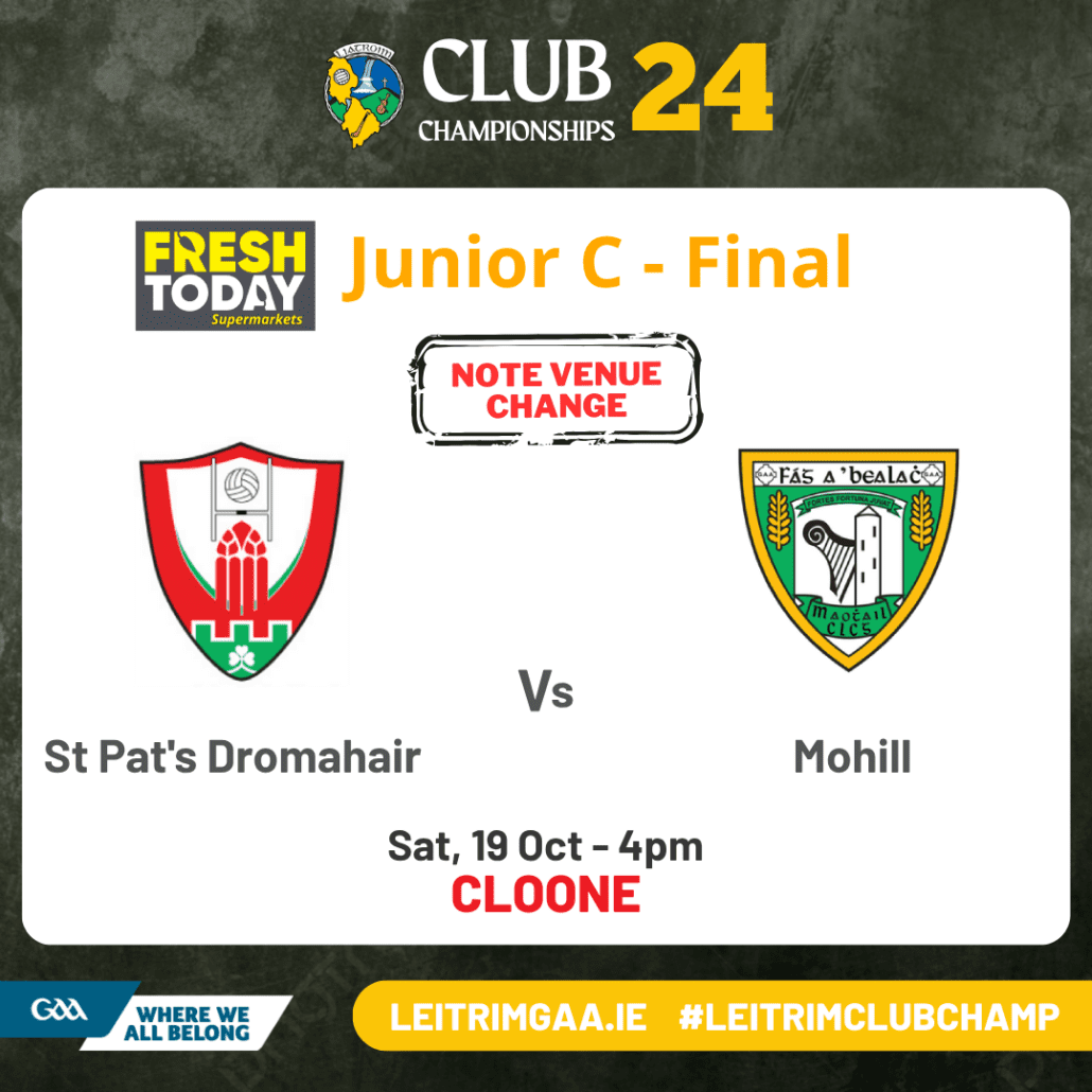 The fixture details for the Fresh Today Junior C – Final has been released and is as follows: