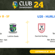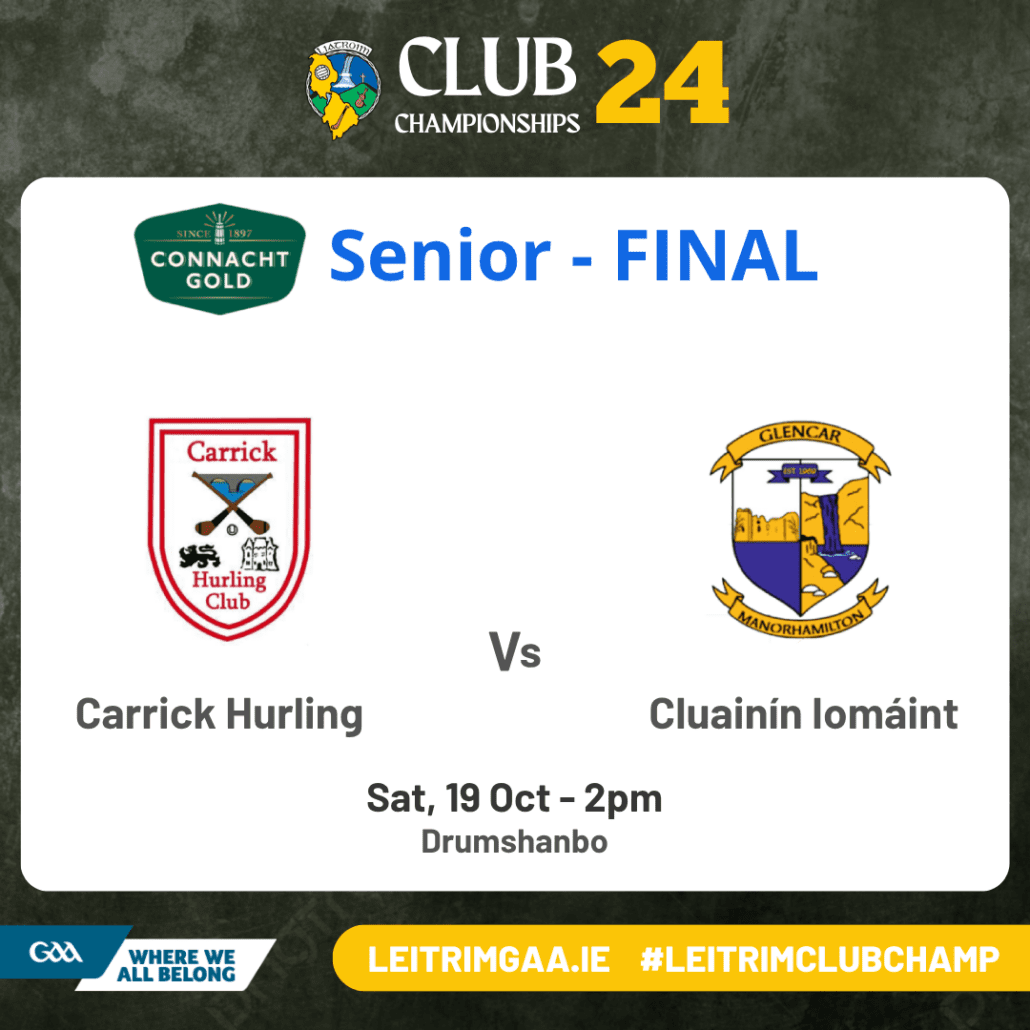 The Final of the Paddy Phelan Cross County Hurling League will take place on Saturday next November 16th at Avantcard Páirc Seán Mac Diarmada. County Senior Hurling Champions Carrick Hurling will take on local rivals Cluainín Iomáint in a repeat of the recent Championship Final which went to extra time. The action commences with a 2.30pm throw-in.