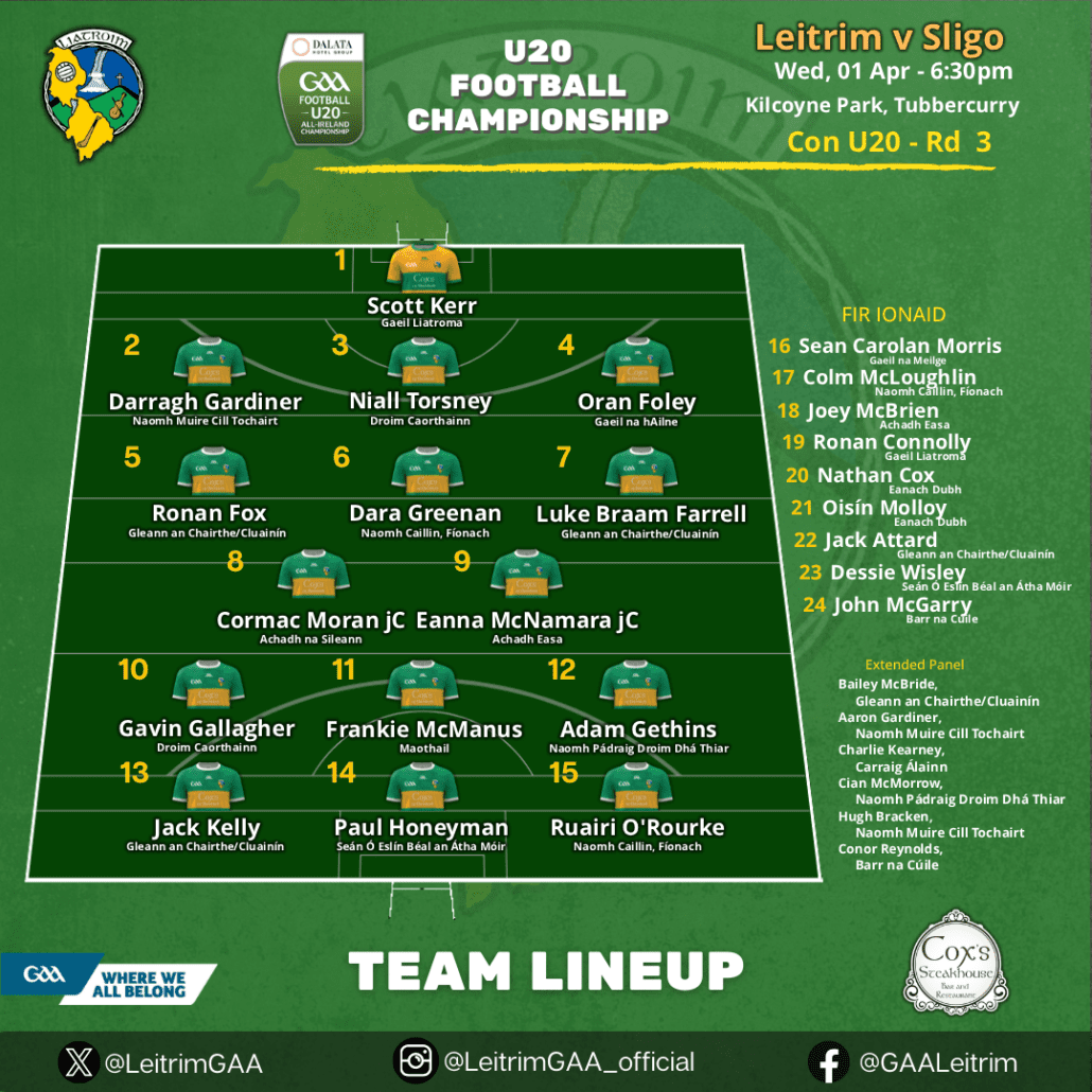 Leitrim Minor team announcement – R1 Connacht Championship