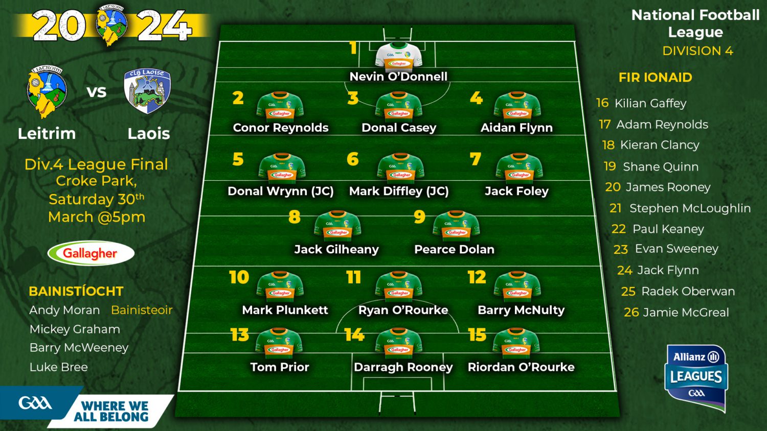LEITRIM V LAOIS DIVISION 4 FINAL TEAM ANNOUNCED